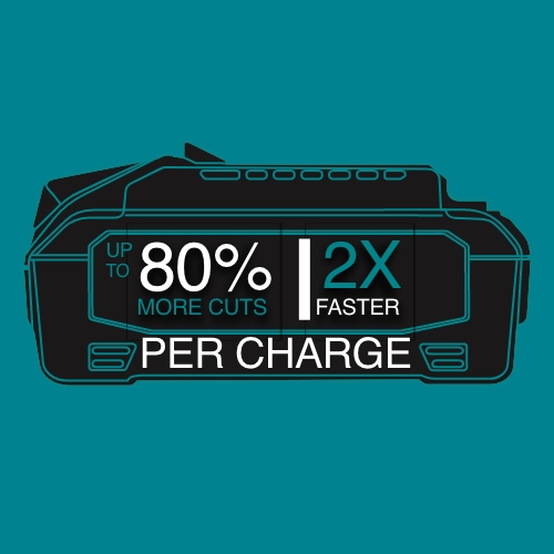 Reduced drag on the tool motor to extend battery life by up to 80% MORE CUTS PER CHARGE*.