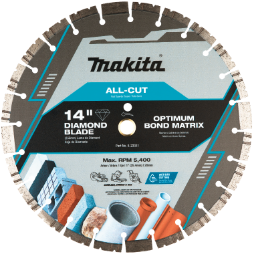 For unparalleled application versatility, the new 14'' All-Cut Diamond Blade features Turbo M-Notch segments that provide an optimal cutting experience in a wide variety of masonry materials. The optimum bond matrix and undercut defense segments increase durability for up to 60% longer blade service life, and up to 20% faster cutting performance when compared to standard blades.