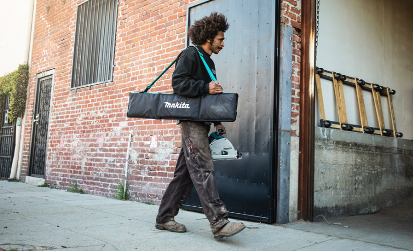 Many contractors are turning to plunge circular saws with rail systems as a more portable option to table saws for breaking down sheet goods and other cutting applications. For easy transport and storage of Makita® 39", 55" or 118" guide rails the Premium Protective Guide Rail Bag is an ideal accessory.